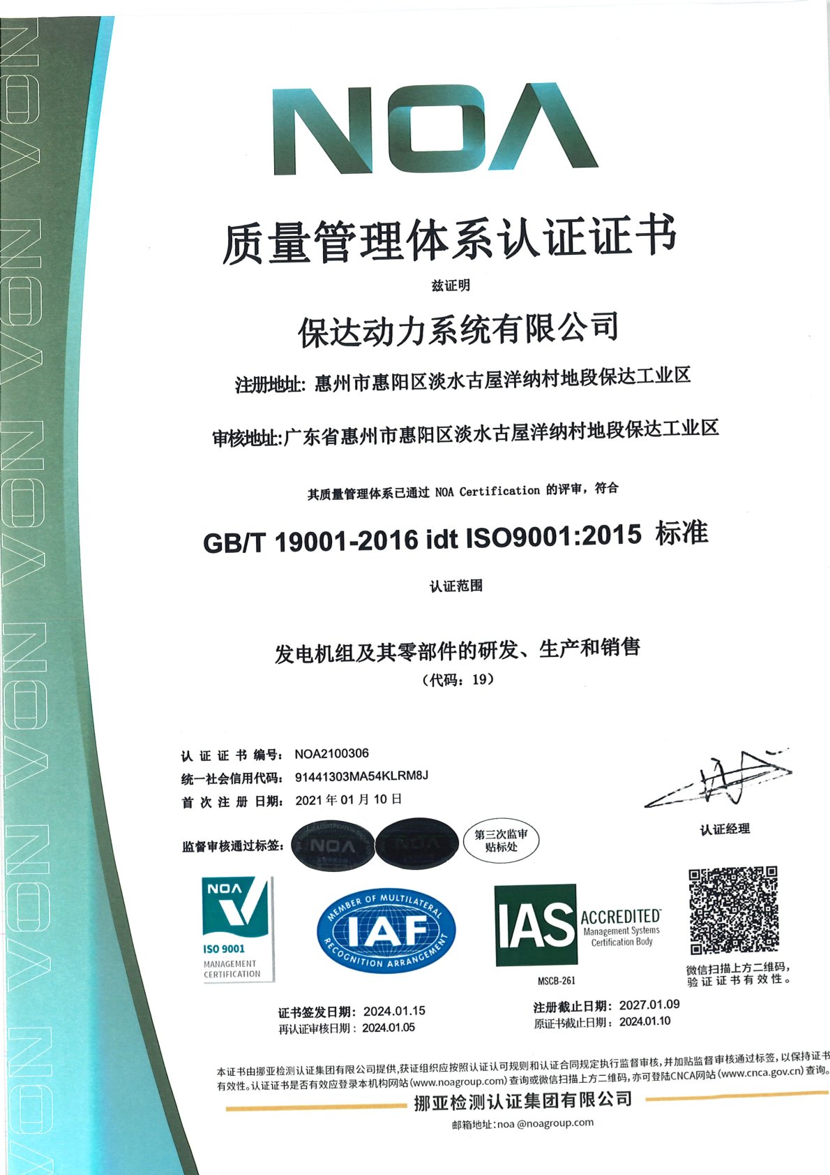 质量管理认证证书