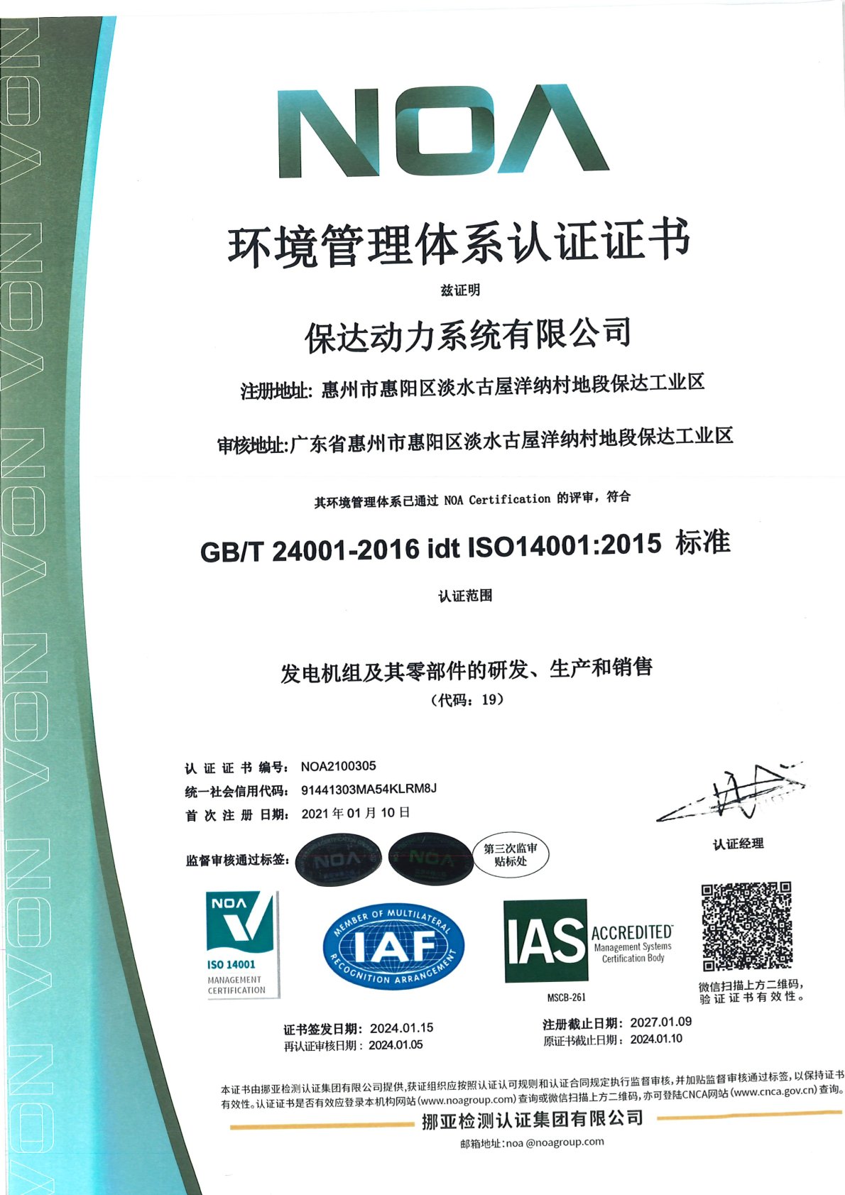 环境管理认证证书